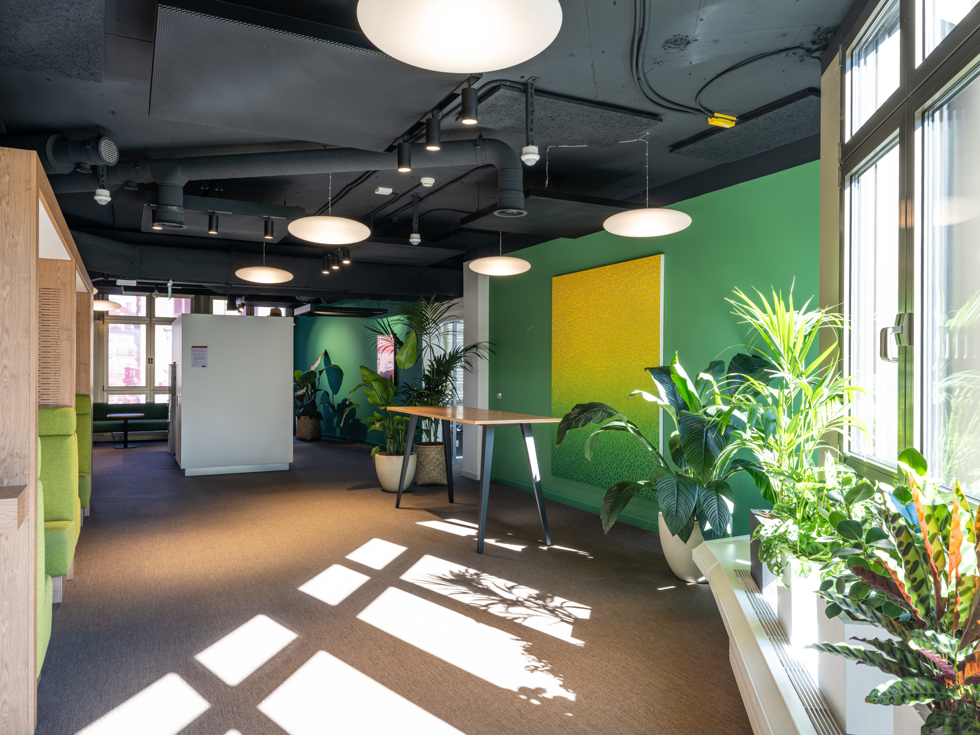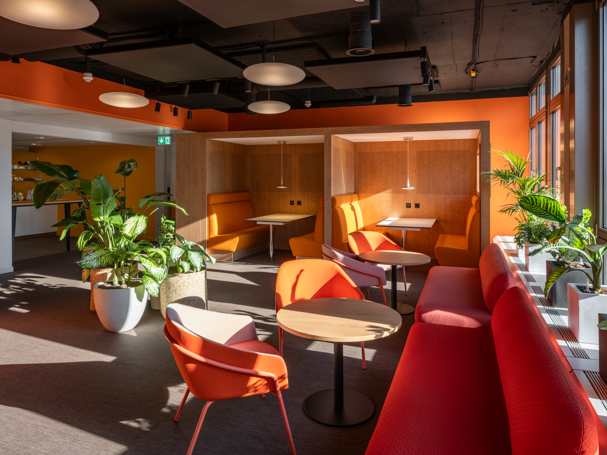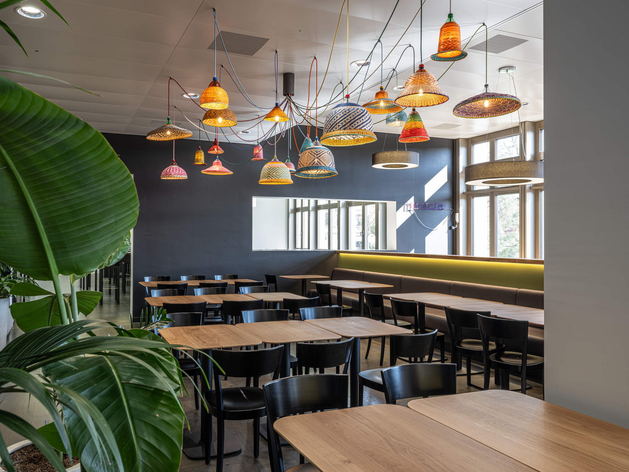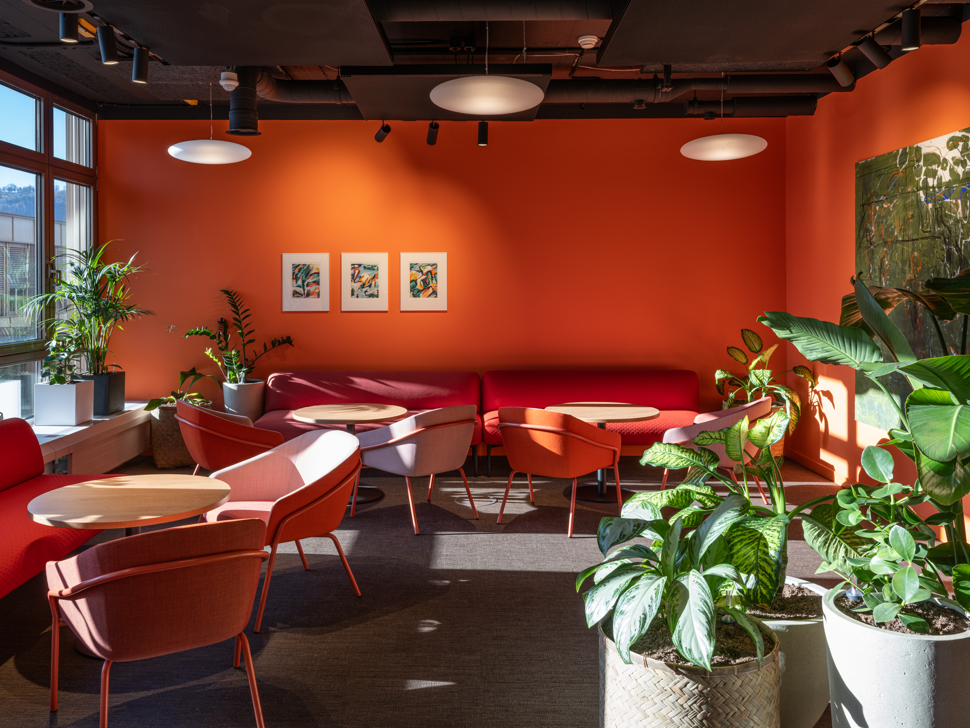 Am Hauptsitz der Mobiliar Versicherung in Bern entwickelten wir das bestehende Bürokonzept gezielt weiter. Dabei planten und gestalteten wir die vorhandenen Begegnungszonen umfassend neu. Das Restaurant wurde mit einer zusätzlichen Bistrozone und Begrünung aufgewertet. Die Cafeteria erhielt mit der Begründung und Vorhängen einen neuen Look. Im Fokus standen ein stimmiges Farbkonzept, gezielte Akustikmassnahmen sowie ein durchdachtes Begrünungskonzept, um die Aufenthaltsqualität und Funktionalität der Räume nachhaltig zu verbessern.