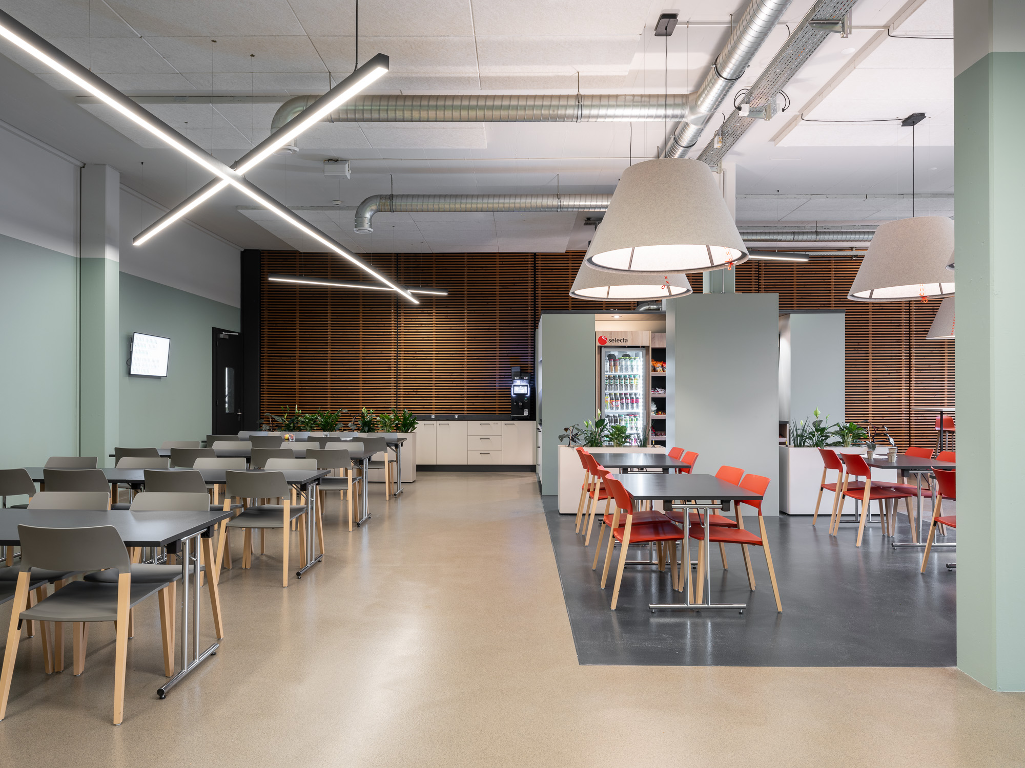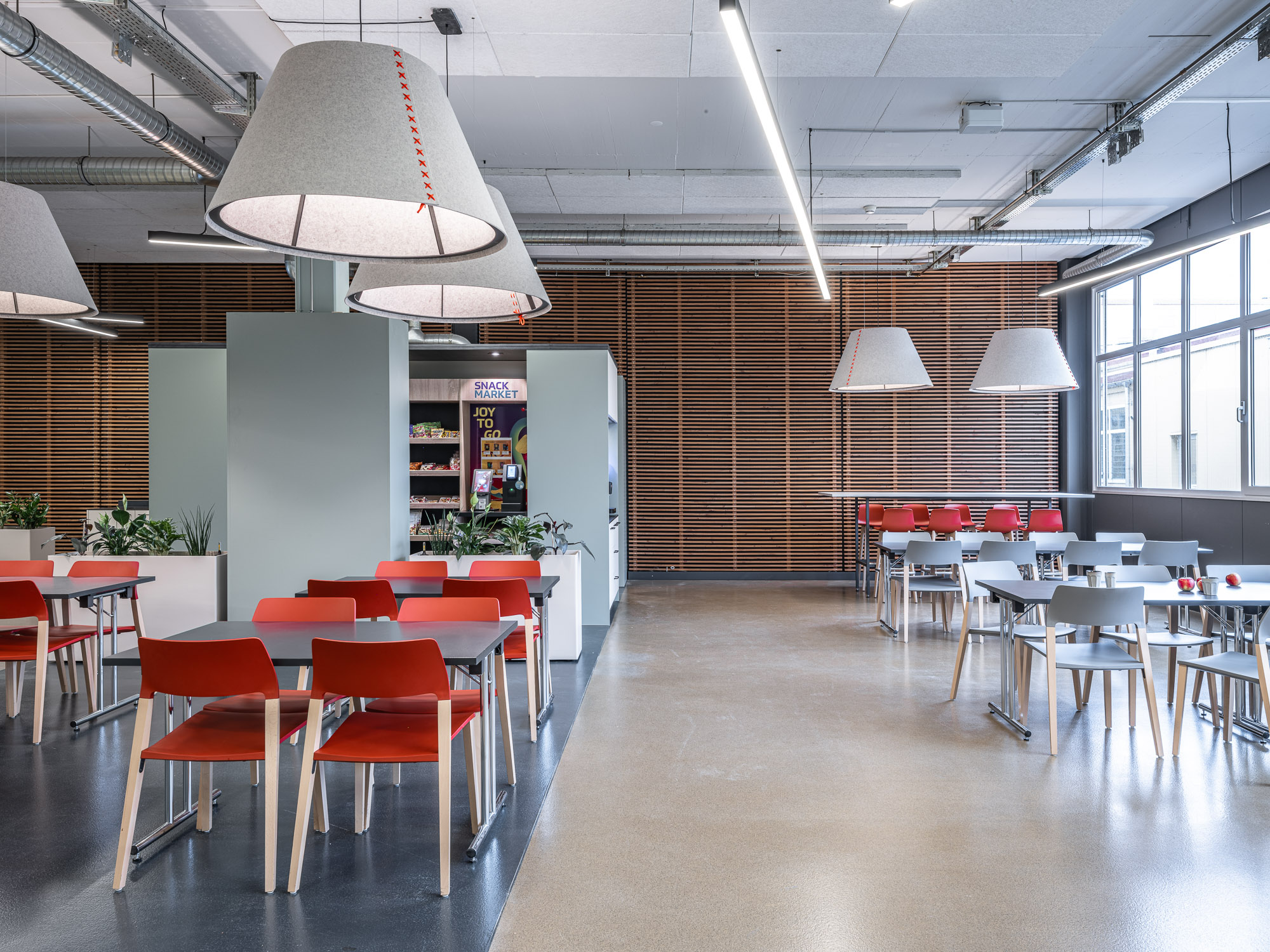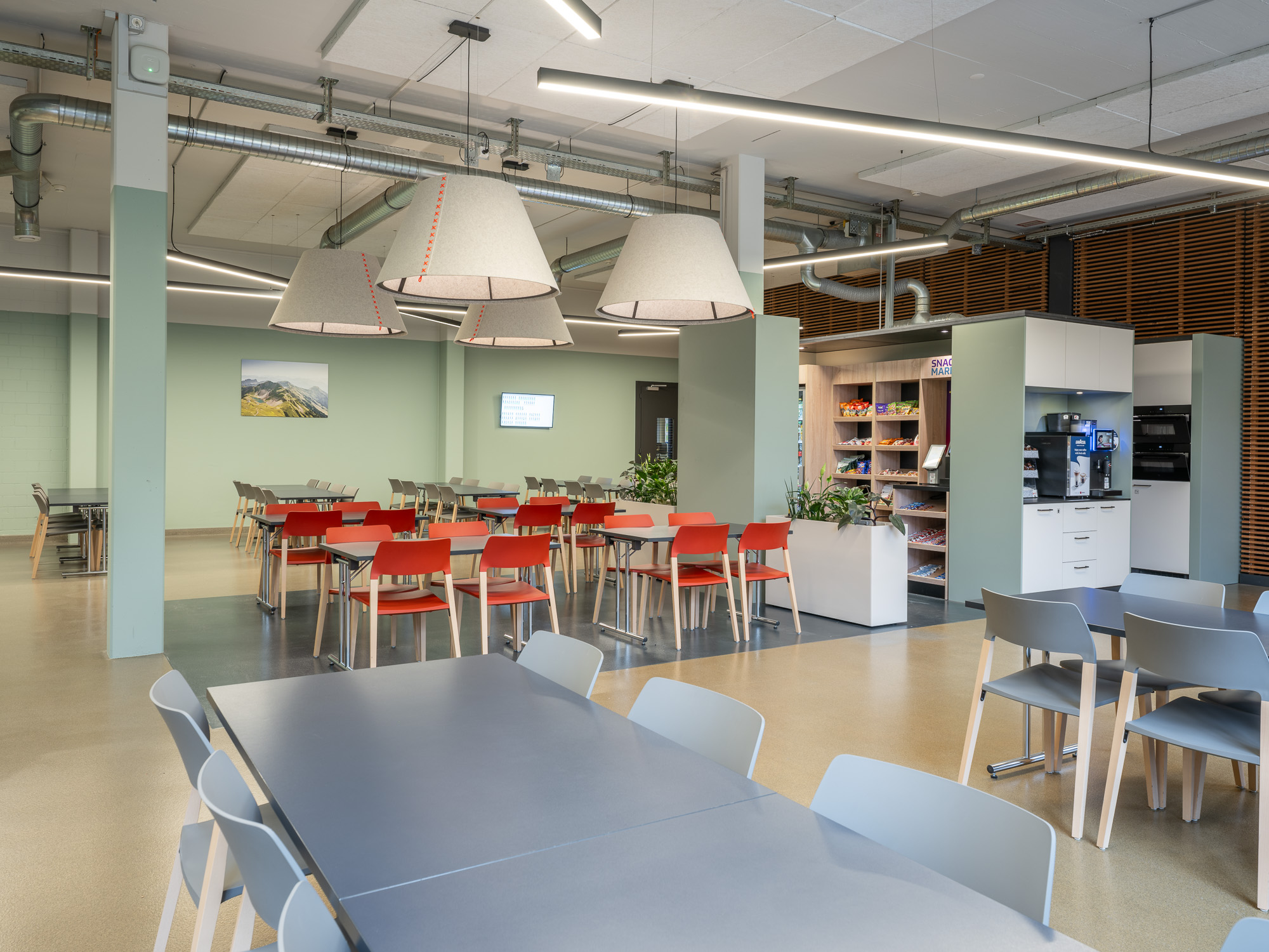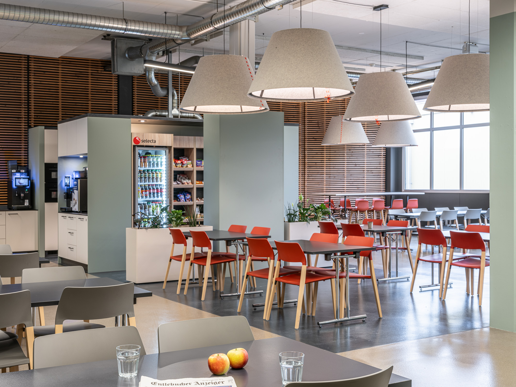 Die Pausenzone der Elektrisola Feindraht AG verbindet Mitarbeitende aus verschiedenen Bereichen (Büro, Produktion, Logistik und Technik) und dient als zentraler Treffpunkt. Wir haben den Raum neu gestaltet mit dem Ziel: Austausch, Zusammenarbeit und Identifikation der Mitarbeitenden zu fördern.